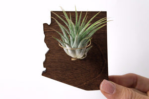 Arizona Wooden Home State Magnet with air plant. Grand Canyon, Camelback Mountain, Sedona, ASU, U of A, NAU are all represented in our 48th state. Show your state pride. If you love the state of Arizona this is the perfect gift for you!