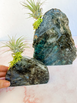 Check out our stunning standing labradorite from Madagascar! These pieces are hand-selected by our team and are truly one-of-a-kind. The natural beauty of labradorite is simply mesmerizing, with its captivating flash of blue, green, and gold. Not only do these pieces look amazing, but they also have a variety of healing benefits. Labradorite is said to be a powerful stone for self-discovery and can help to bring out the best in people. It is also said to enhance intuition and psychic abilities, making it a great stone for those interested in spiritual growth. Get yourself a piece of this natural wonder and let the healing energy of labradorite bring positivity and balance to your life.