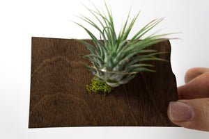Handmade beautiful State cut out wood magnet with lovely air plant.
