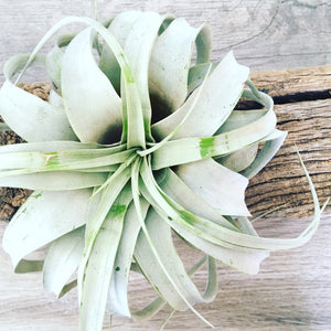 Xerographica is considered to be the Queen of air plants. Xerographica (zero-grafika) is endemic to Mexico and produces a spectacular bloom that can be 4 times the plant's height! Everyone loves this curly green and pinkish Tilly. Perfect centerpiece for a coffee table. This beauty makes a statement. We use the Xerographica's in many of our home that are staged for resale. Simple and powerful design element to any home or office. Super hardy and easy to care for.
