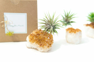 Healing Citrine with air plant is the stone of success, abundance and generosity. This lovely crystal air plant gift is inspired by nature and will bring a living indoor garden to your home or office.